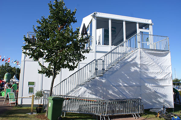Dubbeldäckaren finns att hyra i flera utföranden. Den går att bygga fyrkantig, rektangulär, sexkantig och åttakantig. Till dessa formationer finns en mängd tillbehör och lösningar. Den byggs med ett tungt trägolv som i sig fungerar som vikt för att hålla tältet på plats. I dubbeldäckaren kan man integrera bland annat balkonger och platåer. Det finns flera utförande på till exempel trappor, räcken, dörrar, väggar och tak mm.